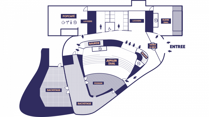 - Het Popcafé is voor, tijdens en na het concert in de Jupiler Zaal geopend en vind je aan het einde van de foyer rechts. Na afloop van de concerten is het Popcafé ook geopend voor bezoekers aan de Kleine Zaal.
